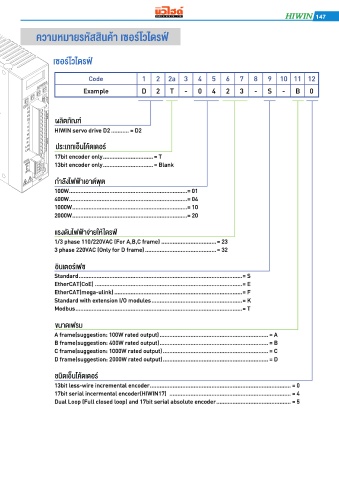147 คว�มหม�ยรหัสสินค้� เซอร์โวไดรฟ์ เซอร์โวไดรฟ์ ผลิตภัณฑ์ ประเภทเอ็นโค้ดเดอร์ กำ�ลังไฟฟ้�เอ�ต์พุต แรงดันไฟฟ้�จ่�ยให้ไดรฟ์ อินเตอร์เฟซ ขน�ดเฟรม ชนิดเอ็นโค้ดเดอร์