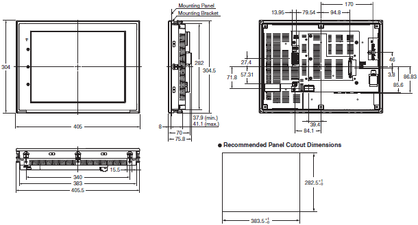| Functions | Host (PLC) access: 1:N NT Links (connections with CS/CJ/CP-series PLCs and C200HX/HG/HE(-Z) PLCs), 1:1 NT Links, or Host Link (connections with C Series or CVM1/CV-series PLCs) Direct access to Temperature Controllers using Smart Active Parts: CompoWay/F and bar code reader connections (Read directly from display.) |