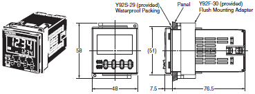 | Y92F-45 | Use this Adapter to install the Counter/Tachometer in a cutout previously made for a DIN 72 × 72 mm device (panel cutout: 68 × 68 mm). |