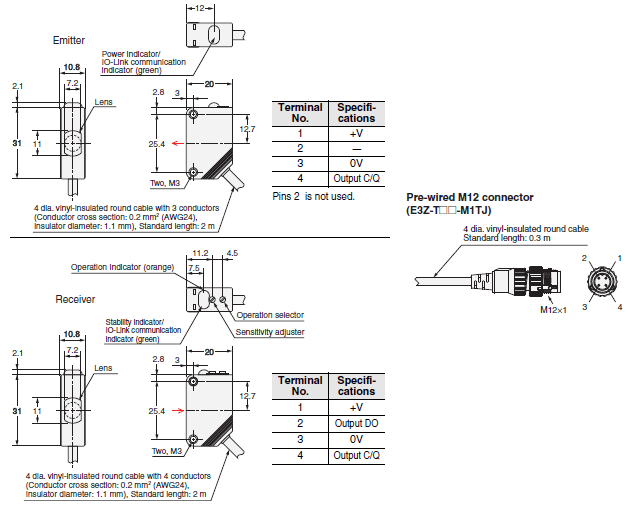 E3Z-T81-M1TJ-IL2 0.3M Emitter E3Z-T81-L-M1TJ-IL2 0.3M Receiver E3Z-T81-D-M1TJ-IL2 0.3M |