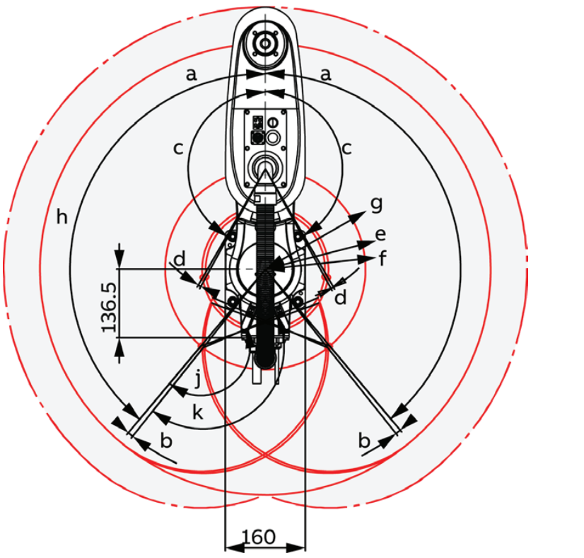 | Movement | Axis movement: Axis 1 Rotation Working range: - 140 ° to + 140 ° Axis max. speed: 6.13 m/s |